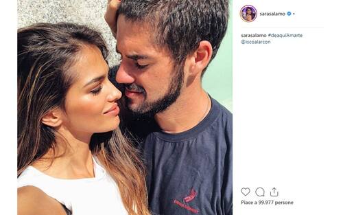 Dall'altro lato del campo Isco e la sua dolce metà Sara Salamo (foto da Instagram)