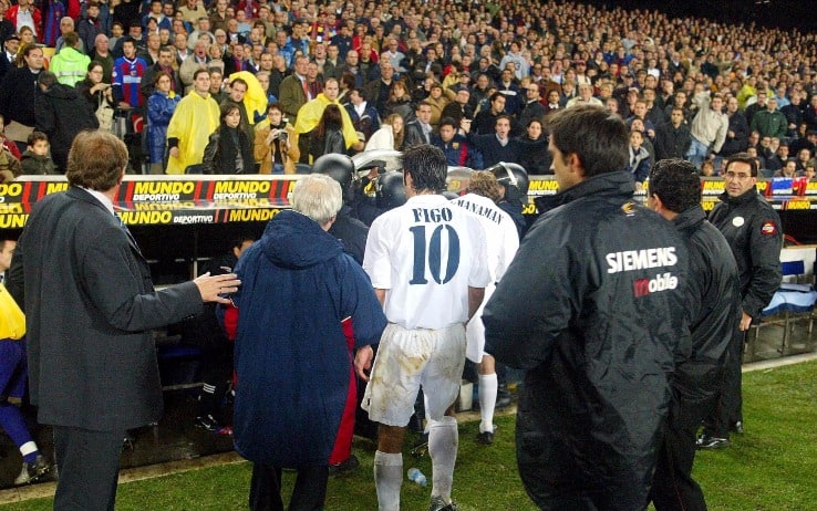 Per far capire qual è il sentimento che tifosi del Barcellona provano nei confronti di Luis Figo, basta ricordare le parole di José Mourinho che, quando era sulla panchina dell’Inter, volle con sé l’ex pallone d’oro – e all’epoca dirigente nerazzurro – in panchina al Camp Nou. Quando un giornalista gli chiese il motivo di questa scelta, lo Special One rispose sorridendo: "Ci saranno 100 mila persone che grideranno ‘portoghese figlio di… ', se porto Figo con me in panchina 50 mila insulteranno il sottoscritto, gli altri lui". Eppure quel match fra Barça e Inter non è neppure lontanamente paragonabile a ciò che riservarono i tifosi blaugrana quando il 23 novembre del 2002 si giocò il Clásico contro il Real Madrid.