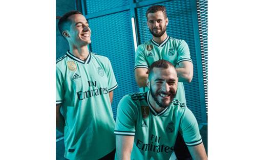 È ufficiale la terza divisa dei Blancos per la stagione 2019/20: la nuova casacca prevede un verde particolarmente acceso, si ispira alla tecnologia e all'evoluzione del futuro. Il riferimento è allo stadio Bernabeu, tuttavia qualcuno ha trovato somiglianze con la seconda maglia dell'Inter (Foto dal sito ufficiale del Real Madrid)