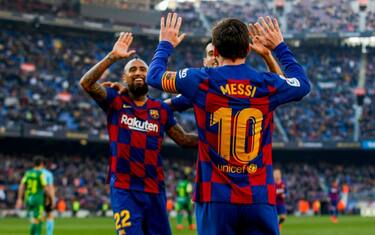 Show dei blaugrana al Camp Nou: quattro reti di Messi e il sigillo di Arthur allo scadere, Eibar battuto 5-0. Tra i catalani debutta il nuovo acquisto Braithwaite, che però non ha potuto essere incluso in lista Champions