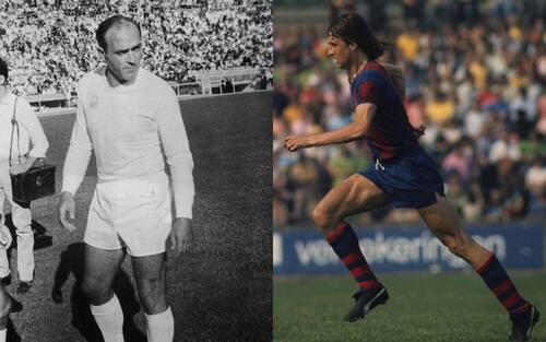 CLASICO DI CALCIOMERCATO. Tra i due club ci sono stati, poi, anche interessanti intrecci di calciomercato. I principali riguardano Alfredo Di Stefano e Johan Cruyff. Nel 1953 il Real Madrid comprò Di Stefano, trattandolo con i Millionarios di Bogotà, la squadra colombiana in cui l'attaccante era stato accolto dopo lo sciopero dei calciatori argentini. Il Barcellona invece, nello stesso momento, acquisì il suo cartellino dal River Plate. La Fifa decise che il giocatore avrebbe giocato in entrambe le squadre, alternando una stagione nel Real e una nel Barça, ma i blaugrana rifiutarono questa opzione e si ritirarono dalla trattativa e il classe '26 divenne interamente dei Blancos. Nel 1974, invece, Cruyff fu promesso dall'Ajax al Real con tanto di accordo raggiunto, ma l'olandese minacciò di lasciare il calcio se non fosse andato al Barcellona, allenato da Rinus Michels. E così il talento orange passò al Barça