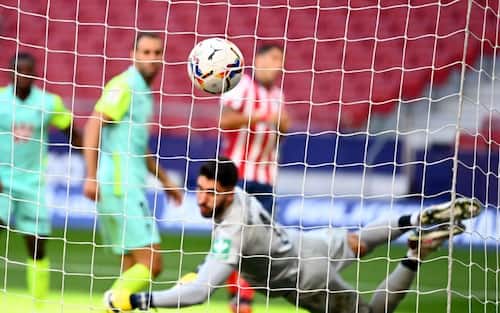 ... E ha messo la palla all'angolino, prendendo in controtempo il portiere del Granada: è il gol del momentaneo 5-0, il primo della sua nuova vita all'Atletico