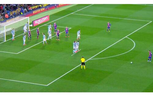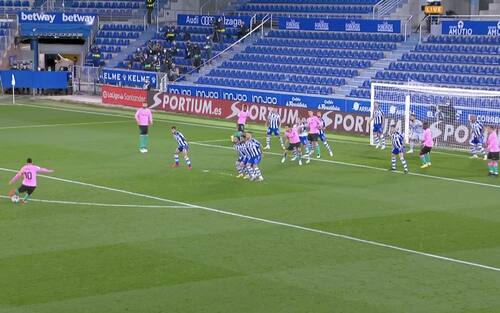 Infine l'Alaves, stessa disposizione, a dimostrazione di come la soluzione al problema inizi a circolare tra gli avversari di Messi, chiamato ora a inventarsi a sua volta qualcosa di geniale per tornare a far paura a tutti su punizione
