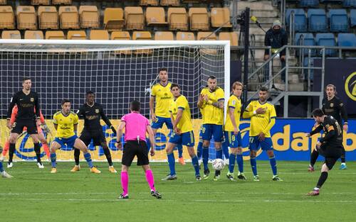 Nel recupero il Cadice trema: avanti 2-1 (dopo l'autogol di Pedro Alcalà è tornato avanti con Negredo), al 93' il Barcellona guadagna una punizione dal limite, ghiottissima occasione per Leo. E allora i padroni di casa si ridispongono alla loro maniera, allungando solo la barriera classica. Messi sceglie la soluzione di potenza, calciando forte a lato della prima barriera, ma superata questa colpisce in pieno un componente della seconda linea