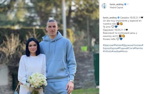 Matrimonio rigorosamente "sportivo" per il secondo portiere del Real, che ha sposato con rito civile la sua Anastasia indossando... tuta e scarpe da tennis. Il giovane calciatore ucraino, campione del mondo Under-20 nel 2019, era stato accostato anche ad alcuni club di Serie A prima di approdare alla corte dei Blancos