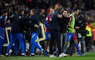 Esultanza tutto sommato contenuta per Xavi che nonostante il risultato favorevole dovrà lavorare molto per far crescere questo Barcellona e riportarlo nelle posizioni di vertice della classifica