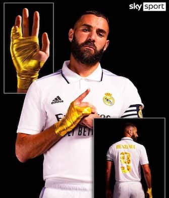 - Proprio per celebrare il Pallone d'oro, lo sponsor tecnico di Benzema ha pensato di realizzare una fasciatura dorata per il fuoriclasse francese...