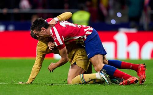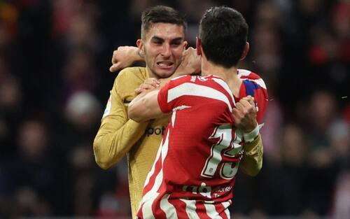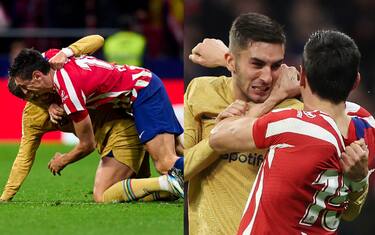 - La gara è stata particolarmente tesa, ma l'apice del nervosismo si è raggiunto nei minuti finali. Tanti i contrasti avvenuti durante i 6' di recupero, con l'Atletico Madrid alla ricerca del pari e il Barça attento a difendere e a ripartire. E proprio in un'occasione simile è arrivato il duello tra Savic, difensore dei Colchoneros, e Ferran Torres, attacante blaugrana. Al 92' il serbo dell'Atletico è entrato da dietro sul numero 11 del Barcellona e, una volta a terra, i due si sono agganciati