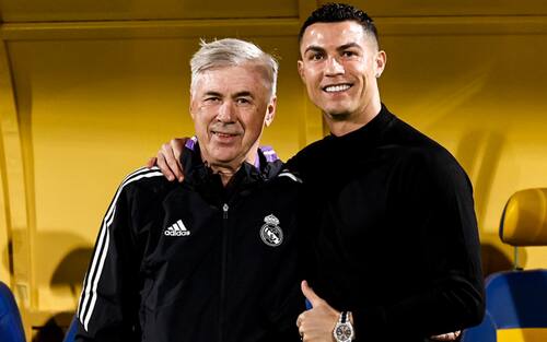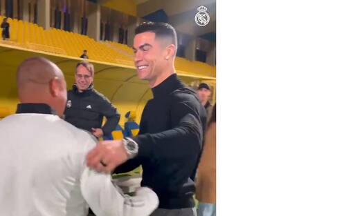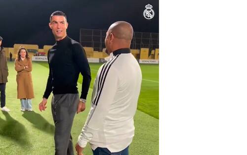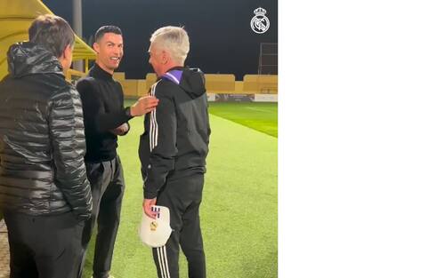 Il Real Madrid, impegnato in Arabia Saudita per la finale di Supercoppa Spagnola contro il Barcellona, ha ricevuto quest'oggi una visita speciale: nel ritiro dei Blancos si è presentato l'ex Cristiano Ronaldo, anche lui oggi nel Paese arabo dopo il trasferimento all'Al-Nassr. Per CR7 sorrisi, abbracci e qualche chiacchiera con Carlo Ancelotti, poi le foto con i campioni brasiliani e non solo. All'allenamento c'era anche Roberto Carlos...