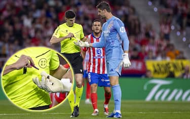 - Minuto 68. Il Real Madrid ha da poco trovato il vantaggio grazie a Militao e l'Atletico si tuffa subito in avanti alla ricerca del pari: il gioco si ferma e Courtois, insieme al difensore autore del gol, lamentano con l'arbitro il lancio di oggetti da parte dei tifosi di casa...