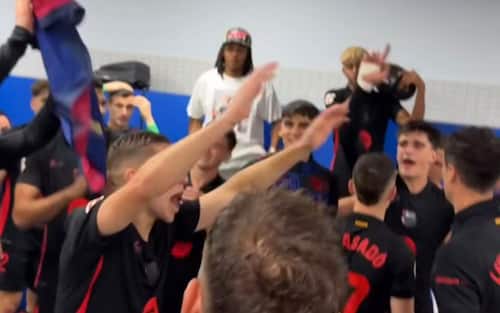 - La festa del Barça si è spostata negli spogliatoi, con i calciatori che hanno continuato a festeggiare la vittoria del 28° campionato.