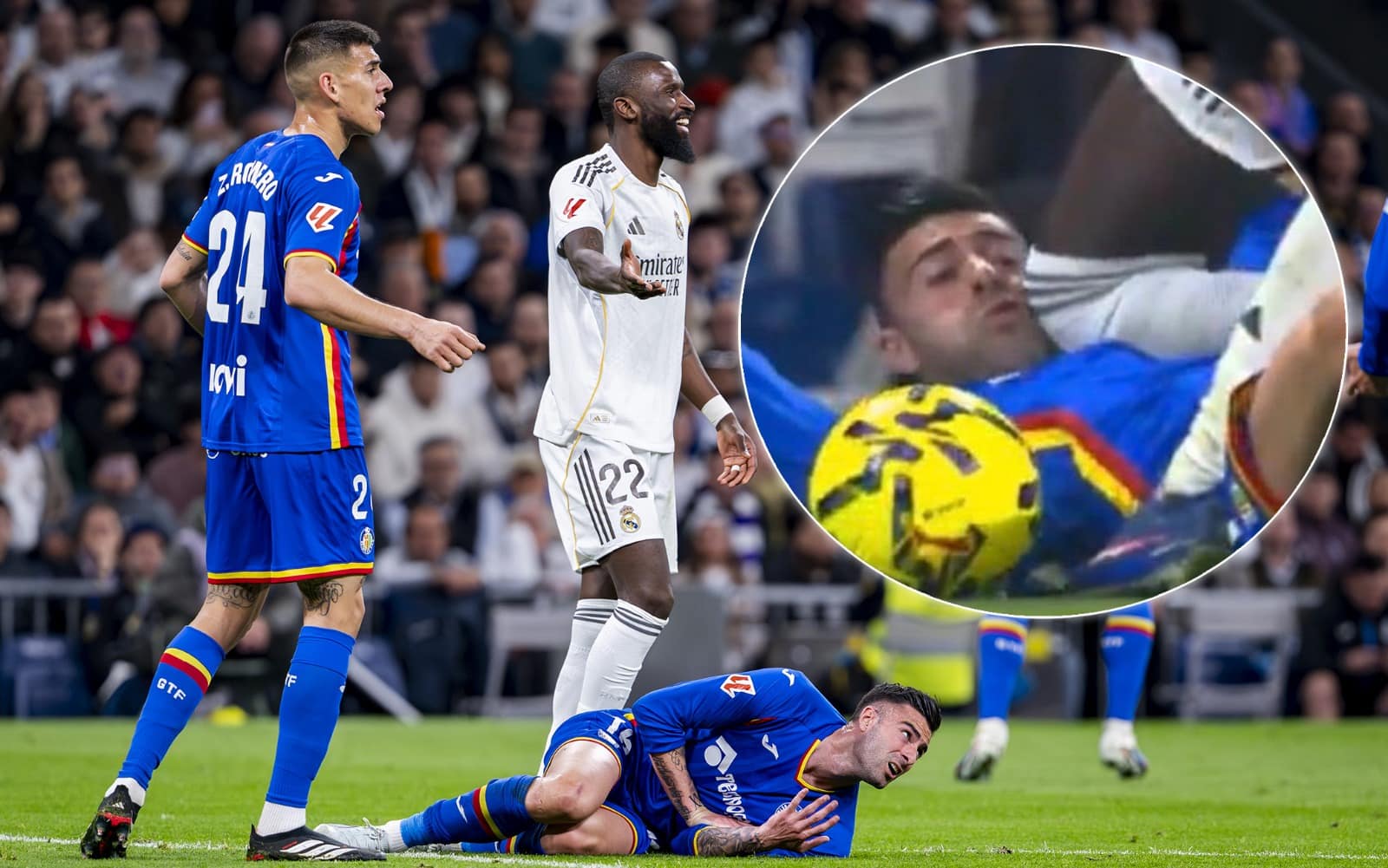 Serataccia per il Real Madrid, battuto a sorpresa 1-0 dal Getafe e ora a -4 dal Barcellona capolista. A decidere la sfida al Bernabeu l'ex interista Satriano, vittoria che la squadra di Bordalas non festeggiava dal 2008 sul campo dei Blancos. Un match nervosissimo con nove ammoniti e due espulsi nel finale (Mastantuono e Liso), ma già nel primo tempo la partita aveva preso una piega durissimo. Emblematico quanto accaduto al minuto 26 con Antonio Rudiger, protagonista dell'episodio che sta facendo discutere in Spagna. Il difensore tedesco aveva colpito con una ginocchiata al volto l'avversario Diego Rico, caduto a terra dopo un contrasto con Arda Guler. Sorprendentemente l'arbitro Alejandro Muniz ha lasciato correre, ma nemmeno il Var è intervenuto per punire l'intervento del giocatore che alla fine ha chiuso il match senza nemmeno un giallo a carico.