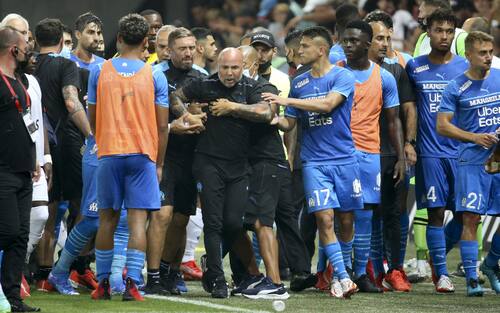 Tra i più esagitati c'è l'allenatore del Marsiglia, Jorge Sampaoli, che fa scattare una rissa anche tra le due squadre