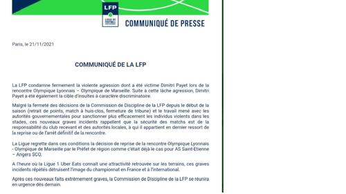 La Commissione disciplinare della LFP, la Lega calcio francese, ha imposto un turno a porte chiuse per il Grupama Stadium "in via precauzionale" e fino alla sentenza definitiva che è prevista per l'8 dicembre. Dunque Lione-Reims di mercoledì 1 dicembre si giocherà senza tifosi.