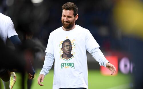I giocatori del Psg hanno effettuato il riscaldamento prima della partita contro l'Angers con una maglia speciale: si tratta di un omaggio per Pelé, una divisa con il volto della leggenda brasiliana recentemente scomparsa, accompagnata dalla scritta "Eterno rei"