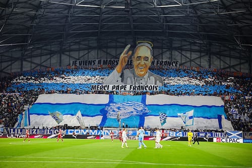 Non solo i tifosi del San Lorenzo, la squadra del cuore di Papa Francesco, ma anche quelli dell'Olimpique Marsiglia hanno voluto rendere omaggio al Pontefice scomparso una settimana fa. Durante il match casalingo contro il Brest splendida coreografia dei tifosi biancazzurri, stessi colori anche dell'Argentina, per ricordare la visita che lo stesso Bergoglio fece al Velodrome nel 2023 con spalti anche allora gremiti