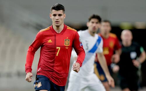 SPAGNA - Morata mette in mostra la maglietta roja. Da notare le diverse sfumature di rosso sui vari "quadranti" della maglia.