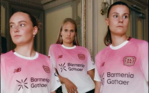 - Torna il blu tra i colori delle maglie del Bayer Leverkusen che mancava dal 2010. Una base blu più chiaro con un pattern con delle croci blu più scure con il logo del club adattato alla colorazione del kit