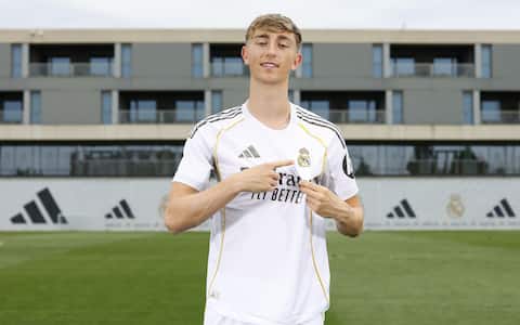 - La divisa da trasferta per la stagione 2025/26 è blu scuro, con loghi argentati e dettagli in giallo "volt". Quest'ultima è progettata per ricordare la facciata nottura dello stadio Santiago Bernabéu e rendergli omaggio.