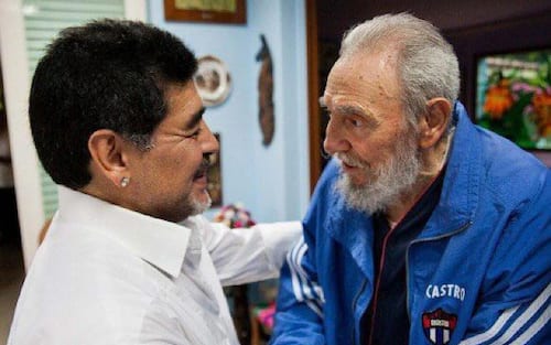 FUTBOL Y PASION. Lo spirito latinoamericano di entrambi si rifletteva anche nella loro passione per il calcio e lo sport in generale, nella forma più poetica e anticonformista. In uno dei loro tanti incontri Castro regalò all'argentino un paio di guantoni da boxe appartenuti a Teofilo Stevenson, ex pugile tre volte campione olimpico. L'amicizia con Maradona contribuì, allo stesso tempo, ad accrescere il suo amore per il calcio, ammaliato dal genio di Diego. "Tu sei il Che Guevara del calcio" gli disse una volta