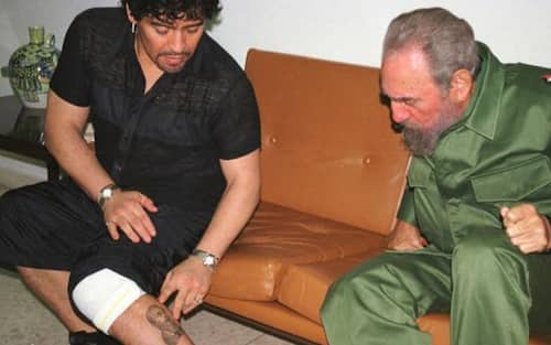 L'OMAGGIO A FIDEL. La generosità di Castro verso Maradona commosse El Pibe. A tal punto da ringraziarlo per l'aiuto con un tatuaggio (sul braccio aveva anche quello di Che Guevara) del volto del leader cubano sulla gamba sinistra