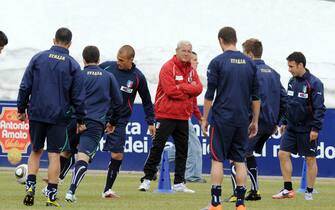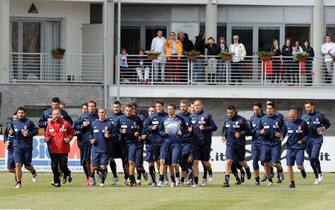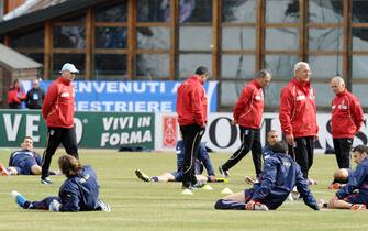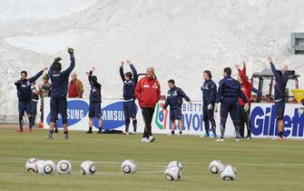 I 28 calciatori, selezionati da Marcello Lippi, hanno svolto la prima giornata di allenamento nel ritiro della località sciistica piemonte dove la neve non ha ancora lasciato il posto ai prati fioriti. LA GALLERY