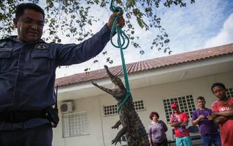 Succede anche questo a Manaus. Un piccolo caimano catturato per strada da un coraggioso poliziotto -