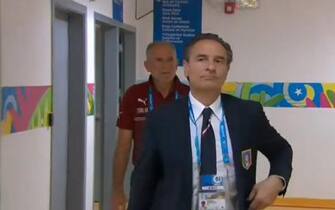 Alle 23.10 (italiane) l'Italia è già sul terreno di gioco per la ricognizione. Grande concentrazione tra gli azzurri -