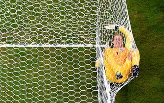 Nulla da fare per Joe Hart, avvolto nella rete della sua porta -