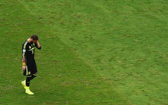 Molto commossi i giocatori della Spagna, che è scesa in campo con una maglia nera: la fine del ciclo Del Bosque è arrivata -