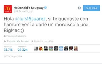 Anche il profilo Twitter della Mc Donalds Uruguay, subito dopo la fine della gara tra gli Azzurri e la Celeste, aveva twittato questo. Come dire: Luis, se hai ancora un po' di fame, vieni a dare un morso anche a un Big Mac -