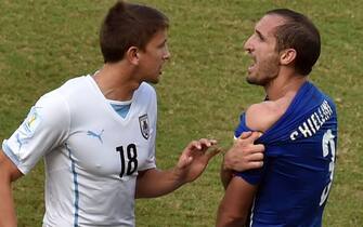 E Luis Suarez che cade a terra toccandosi i denti. Nonostante tutto, per la Federazione Celeste, è stata solo una scivolata e una "caduta" sulla spalla di Chiellini -