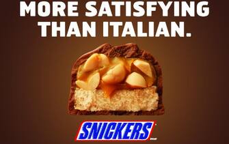 La nota marca di snack Snickers, aveva twittato subito dopo la partita questo slogan, all'hashtag #luissuarez: "Più soddisfacente di un italiano" -