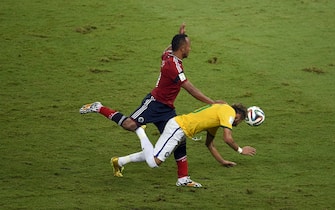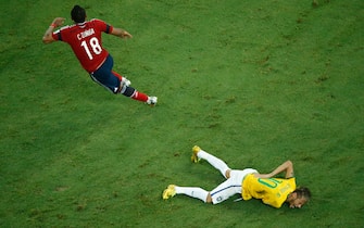 LA FOTOGALLERY. All'88' del quarto di finale con la Colombia il terzino del Napoli entra colpendo con una ginocchiata nella zona lombare il numero 10 del Brasile. La barella, la corsa in ospedale e l'esito: frattura di una vertebra, Mondiale finito