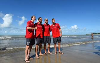 Anche diverse nazionali hanno approfittato della vicinanza della spiaggia: in questa immagine, ad esempio, il francese Sagna si lascia fotografare con alcuni tifosi-turisti -