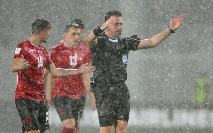Il manto erboso dello stadio di Scutari, messo a dura prova dalle abbondanti piogge dei giorni precedenti, non è stato testato nemmeno dalla Nazionale di casa, che proprio per non peggiorarne le condizioni ha svolto l'allenamento di rifinitura presso il centro sportivo di Durazzo. La situazione meteo, però, è migliorata nella giornata di domenica: le strade sono ancora visibilmente allagate, ma il cielo è sereno.
