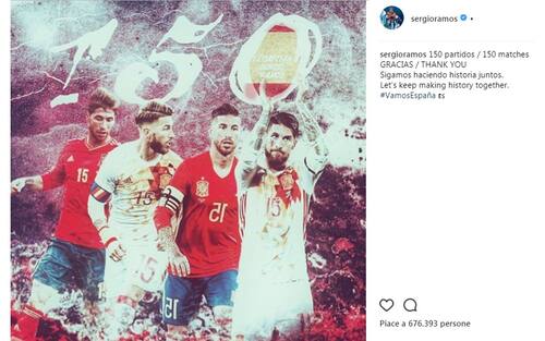 La gioia più bella per il leader della Spagna, che ha tagliato il traguardo delle 150 presenze con la sua Nazionale, pareggiando 1-1 nell'amichevole con la Germania (foto da Instagram)