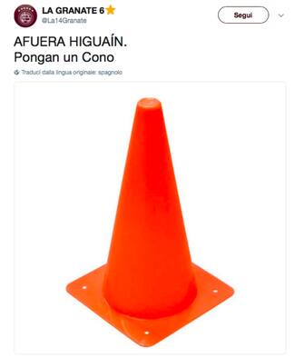 Il Pipita si è divorato un gol, cosa che non dovrebbe quasi mai accadere a un attaccante come lui. Eppure la delusione è stata a tutto tondo, ecco perché alcuni hanno suggerito la sostituzione… con un conetto