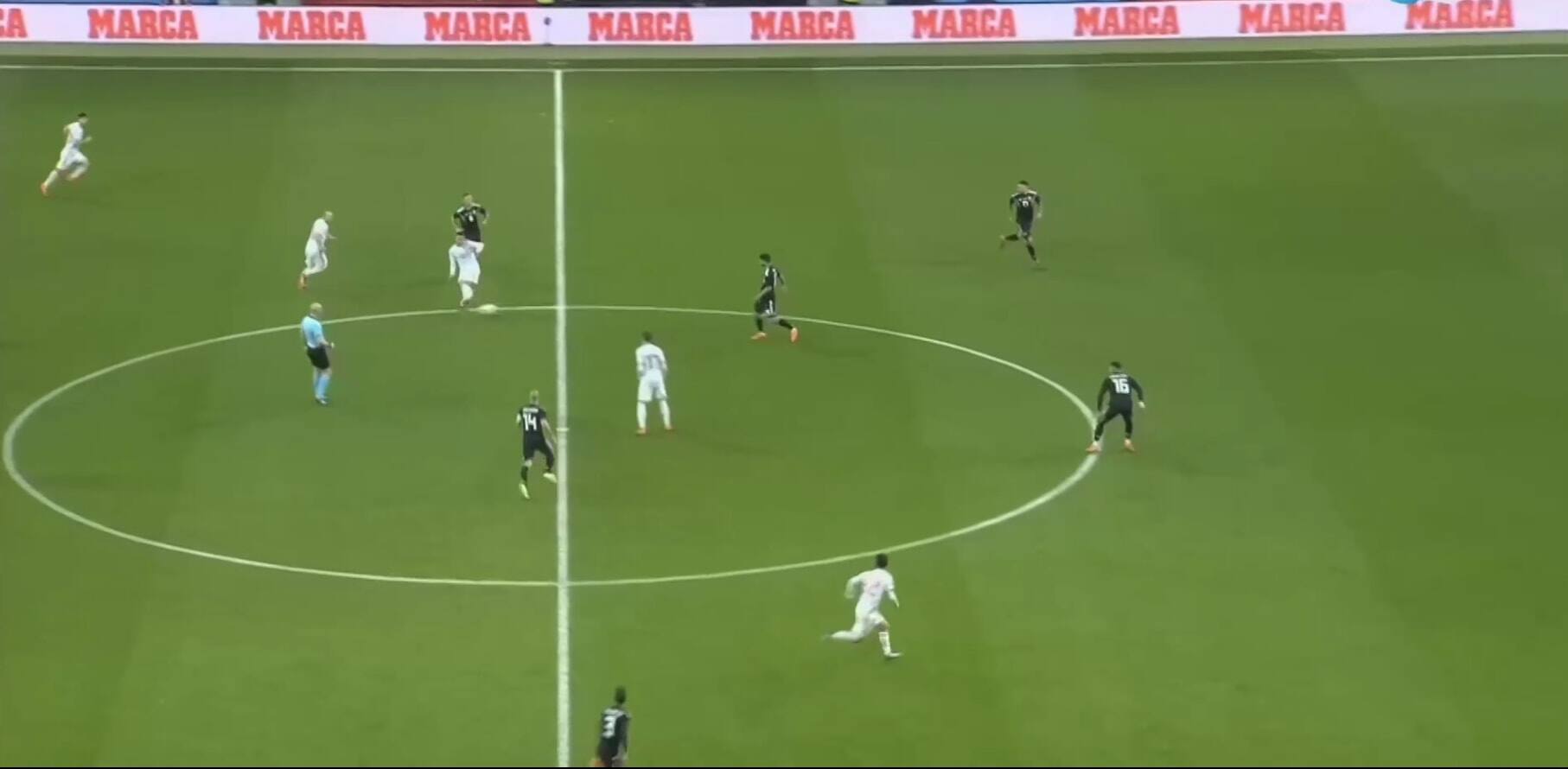 Le distanze tra i giocatori sono sbagliate, Alcantara non ha pressione e c’è un corridoio aperto dove Isco può inserirsi.