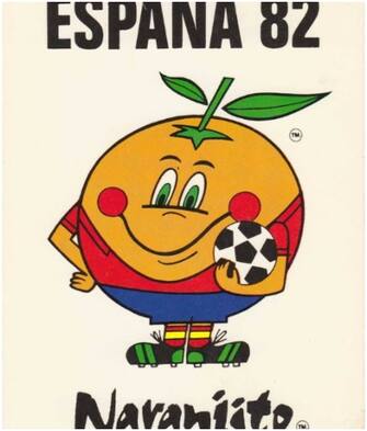 La mascotte di Spagna 1982: Naranjito, un'arancia che indossa la maglia iberica -