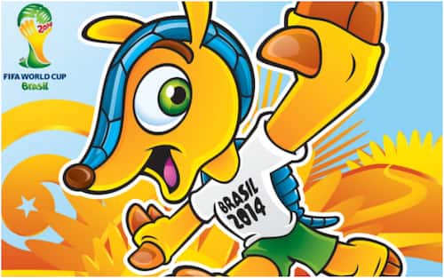 La mascotte di Brasile 2014: Fuleco, un armadillo di colore giallo con corazza azzurra -