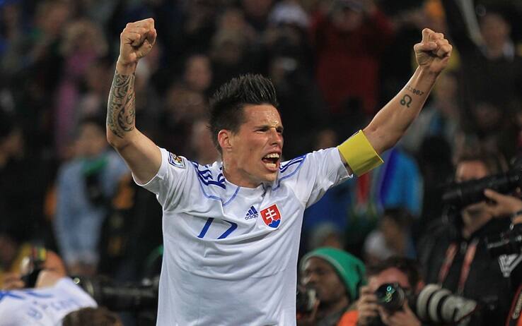 Dopo le prime due partite, a dir poco deludenti, l’Italia aveva conquistato appena due punti: uno contro il Paraguay all’esordio (1-1 gol di De Rossi), l’altro contro la modesta Nuova Zelanda (anche in quel caso il match terminò 1-1). Per passare al turno successivo era dunque necessario battere la terza squadra del girone: la Slovacchia. In realtà, con una serie di combinazioni, l’Italia si sarebbe potuta qualificare anche pareggiando, ma se sei la squadra campione del mondo in carica e se devi battere la Slovacchia non puoi certo pensare alle combinazioni per un pari. Hamsik e compagni erano invece esordienti in un Mondiale e, con un solo punto all’attivo, dovevano per forza battere gli azzurri per qualificarsi agli ottavi. Era il 24 giugno 2010, a Johannesburg la partita la dominarono gli slovacchi che si portarono sul 2-0 grazie alla doppietta di Vittek. Il gol di Di Natale all’81’ riaccese le speranze ma Kopunek segnò il 3-1 a un minuto dalla fine. Nel recupero Quagliarella fece una rete delle sue ma non bastò. L’Italia venne umiliata ed eliminata al primo turno con appena due punti in un girone dov’erano presenti Slovacchia, Nuova Zelanda e Paraguay. Fu l’ultima partita da Ct azzurro di Marcello Lippi, che rimane comunque l’ultimo allenatore ad averci portato sul tetto del mondo.