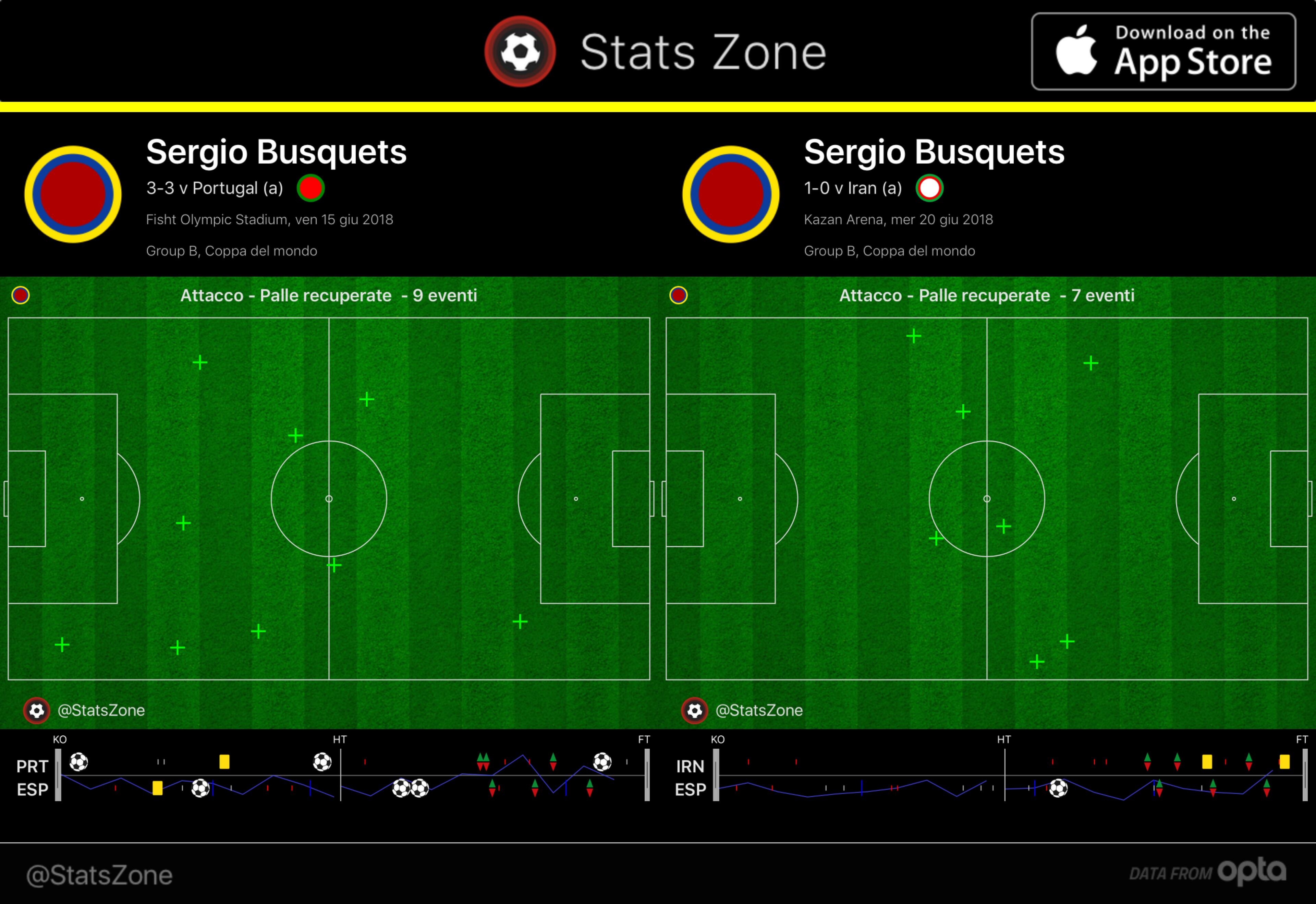 Per una Spagna che gioca tanto con la palla nella metà campo avversaria, le transizioni difensive si sono prevedibilmente dimostrate il vero punto debole. Una volta persa palla, o la Spagna la recupera subito oppure gli avversari si trovano davanti tanto campo da poter attaccare: il Portogallo così ha giocato la sua partita e l’Iran così ha fatto paura nel secondo tempo. Il ruolo cardine di tutto il sistema quando senza palla quindi è quello di Busquets, un giocatore incredibile nel leggere e intervenire dove serve, ma non obiquo. Busquets non può difendere da solo una porzione di campo troppo grande.