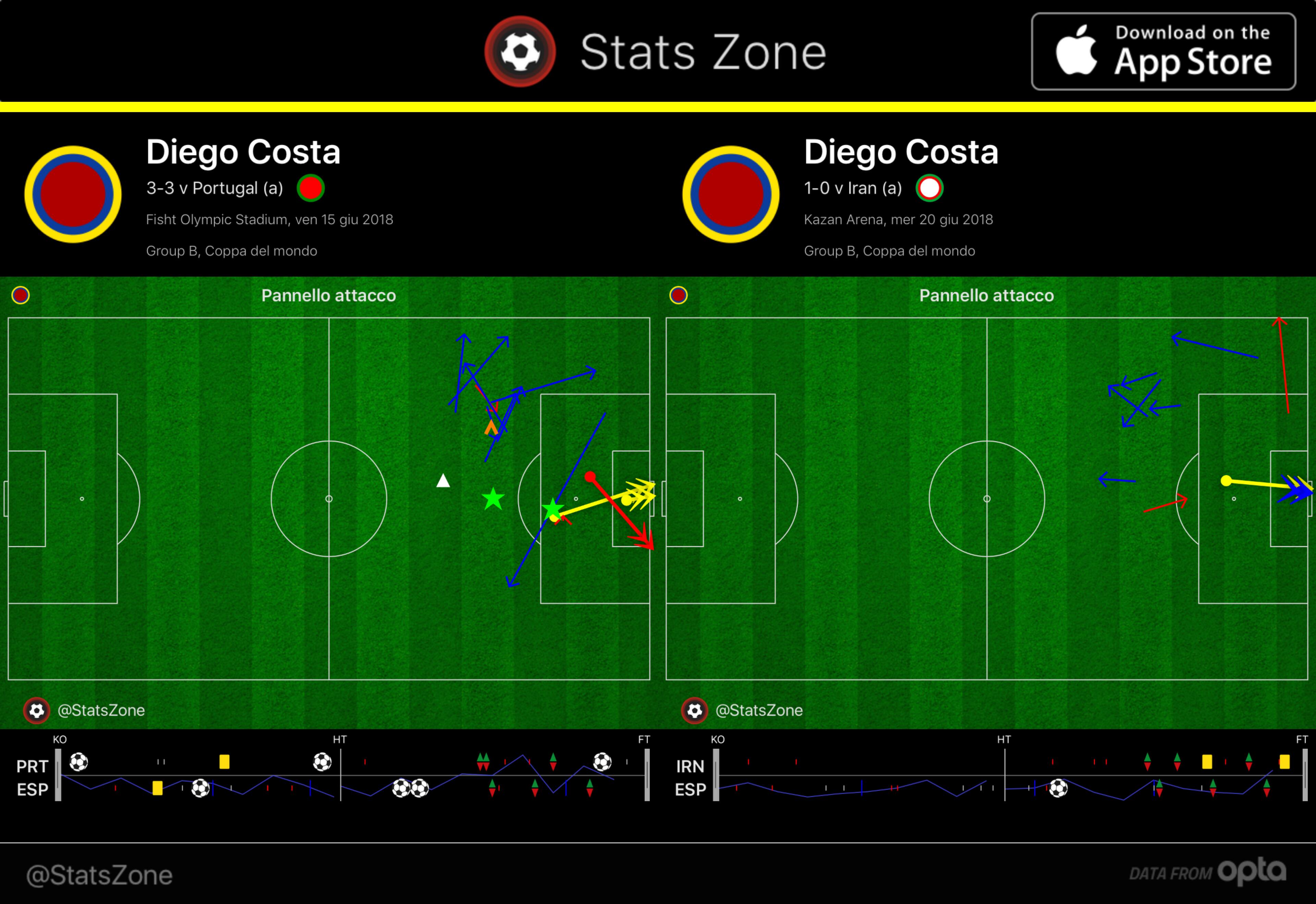 Il primo gol con il Portogallo è l’idea di Lopetegui manifestata in campo, con una verticalizzazione improvvisa di Busquets sotto forma di lancio lungo nella zona di Diego Costa, che lui trasforma da disimpegno di Pepe a gol per la Spagna con azioni da punta vecchia scuola, vincendo prima il contrasto aereo col centrale e poi sbarazzandosi del secondo dribblandolo come un birillo. Stessa cosa per il gol vittoria contro l’Iran in cui raccogliendo un filtrante di Iniesta, dopo aver fatto un perfetto movimento in profondità, riesce a mettersi nella condizione di avere un rimpallo favorevole e sorprendere il portiere avversario. Diego Costa non ha la tecnica, né la mentalità per rendersi utile nelle fasi di attacco posizionale con appoggi precisi o movimenti incontro, ma la sua fisicità, verticalità innata e determinazione è proprio quello che serve ad una squadra così tecnica e omogenea in un torneo breve in cui basta un episodio favorevole per svoltare una partita. Diego Costa è un magnete di episodi.
