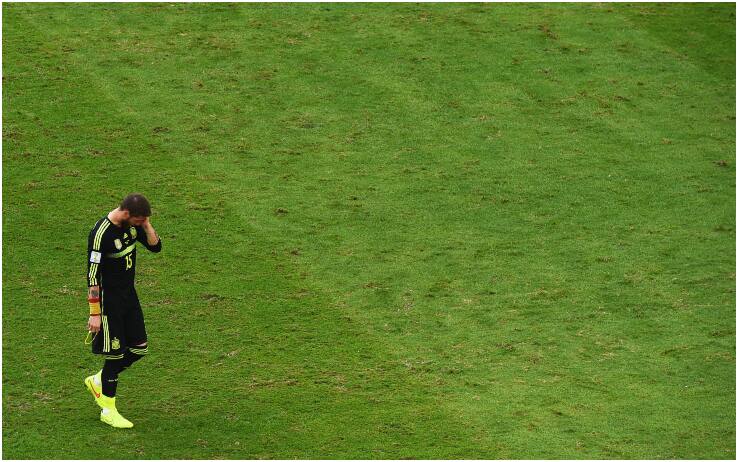 Lo choc di uscire da vincenti alla prima occasione utile colpì anche la Spagna nel torneo disputato in Brasile nel 2014. Le Furie Rosse arrivarono alla Coppa da dominatori del mondo, dopo aver messo in bacheca l’edizione precedente e i due Europei a cavallo del trionfo in Sudafrica. In molti erano pronti a scommettere su un altro successo degli iberici, ma già la prima sfida offrì indicazioni del tutto opposte. La squadra guidata allora da Del Bosque fu infatti travolta, in un replay della finale ammirata quattro anni prima, dall’Olanda che schiantò gli avversari con un perentorio 5-1. Il ko di larga misura non permetteva altri passi falsi, ma gli spagnoli non riuscirono a rialzare la testa e persero anche la seconda partita contro il Cile. I gol nel primo tempo di Vargas e Aranguiz decretarono l’eliminazione dei campioni in carica addirittura con una giornata d’anticipo. A nulla, se non per l’onore, valse quindi la vittoria per 3-0 rimediata nell’ultimo turno contro l’Australia.
