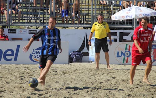 Nel 2008 l'attuale allenatore dell'Inter era sulla panchina del Bari, in Serie B. La voglia di tornare in campo spinse l'ex Ct a mettersi alla prova nel beach soccer (foto LND)