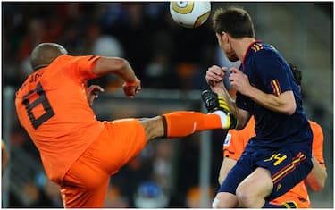 Van Bommel e Sergio Ramos, poco dopo il 20’ finirono anch’essi sul taccuino dell’arbitro; De Jong fu graziato al 28’ e nel secondo tempo continuarono a fioccare i gialli. Heitinga prese il secondo al minuto 109. A conti fatti, la finale aveva prodotto 12 gialli e un rosso. I punti ‘cattiveria’ sono 7, cifra non altissima dato che non ci sono stati rossi diretti