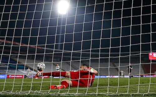 MINUTO 93 - Ecco il momento del tiro di CR7. La partita è sul 2-2. I portoghesi sono andati avanti 2-0 (doppietta di Diogo Jota), ma la Serbia ha rimontato fino al pari. Milenkovic viene espulso nel recupero e, all'ultimo secondo, la zampata decisiva porta la firma del solito Ronaldo. Lungo lancio di Nuno Mendes e destro al volo dalla destra dell'area. Il portiere Dmitrovic smorza col corpo in uscita...