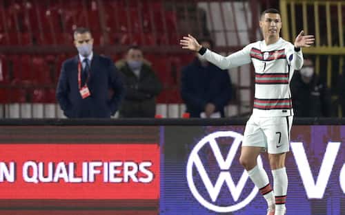 Cristiano Ronaldo, gol fantasma al 93' di Serbia-Portogallo: fascia a terra. LE FOTO