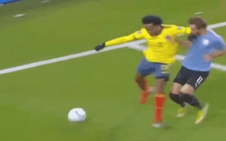 La Serie A è ferma ma i duelli 'a distanza' no. Nella notte tra giovedì e venerdì si è giocata Colombia-Uruguay, partita valevole per le qualificazioni ai Mondiali in Qatar del 2022 e al minuto 63° c'è stata una 'scena-antipasto' di Juventus-Roma, in programma domenica 17 ottobre alle 20:45. Protagonisti sono stati Juan Cuadrado e Matias Viña: l'esterno della Juventus stava difendendo palla dall'attacco dell'uruguaiano della Roma e per farlo ha allargato in maniera eccessiva il gomito sinistro, andando a colpire Viña che è caduto a terra. Cuadrado se l'è cavata con un cartellino giallo. Non c'è stato l'intervento del Var. Dopo le proteste accese dei giocatori uruguaiani, la partita è stata ripresa e portata a termine sul risultato di 0-0.